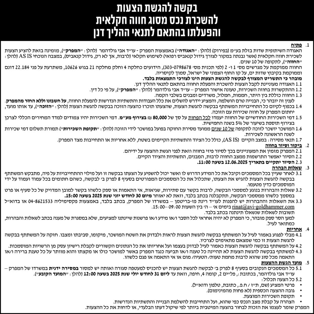 *המועדים המצוינים במודעה הוארכו בשבועיים בשל המצב הביטחוני כמפורט בבקשה המעודכנת.